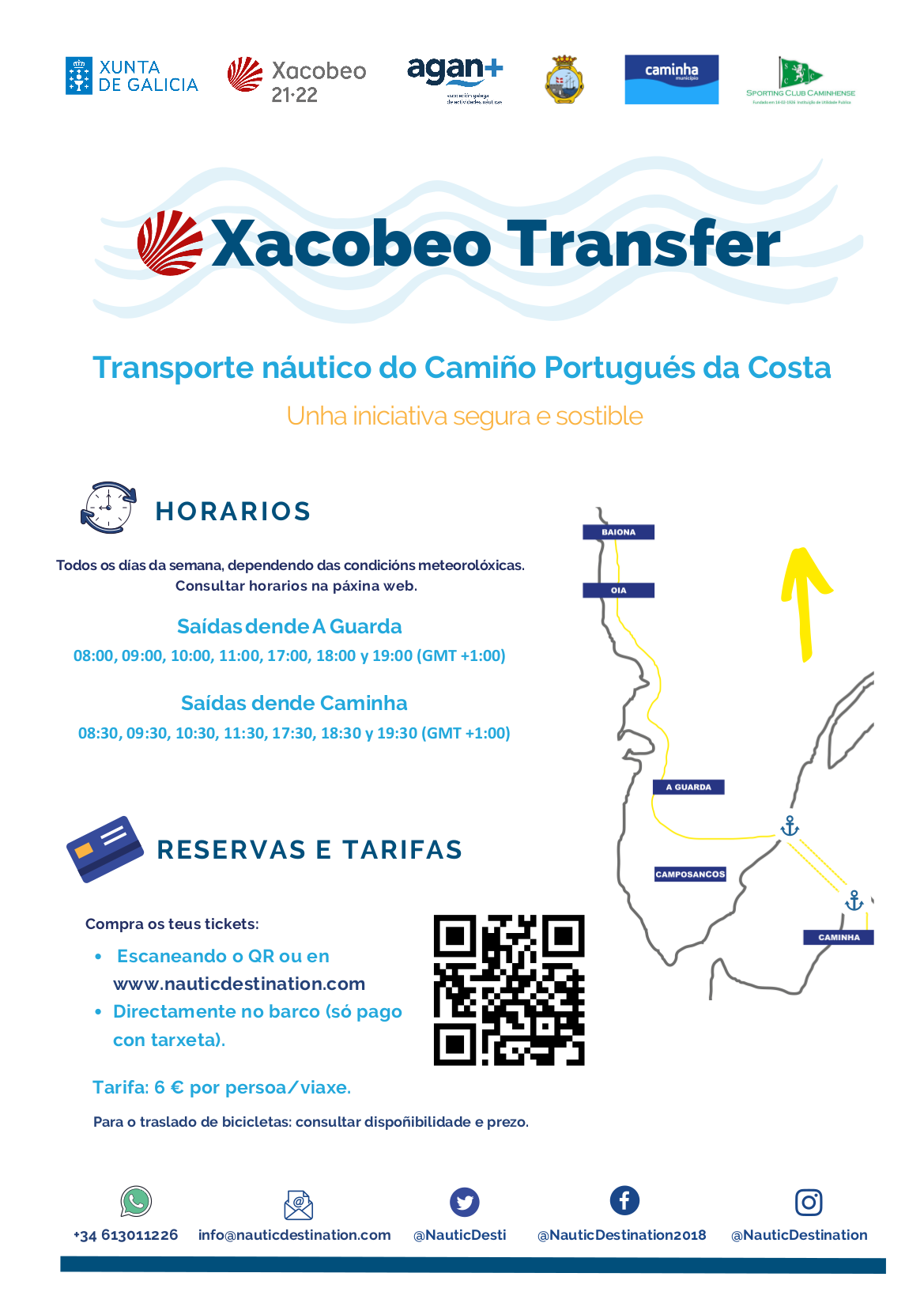 Mañana sábado 9 de abril se presenta el transporte náutico XACOBEO TRANSFER que lanza la Xunta de Galicia ante la necesidad de una conexión real entre A Guarda y Caminha. Como se comunicó hace un mes, este transporte comenzará a dar servicio coincidiendo con las fechas de semana santa con dos pequeñas embarcaciones para un Leer más