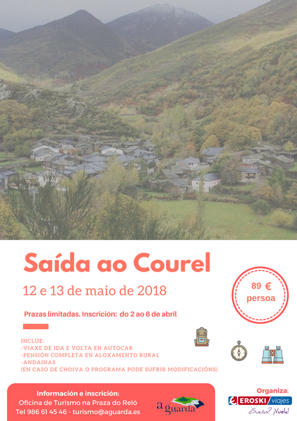 Este año organizará de nuevo un fin de semana en el Courel después de la buena experiencia del pasado año. Por lo que el Ayuntamiento de A Guarda y Viajes Eroski organizan una nueva edición en la que se volverá a disfrutar de la gran riqueza natural y paisajística de esta Sierra luguesa.