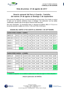 Esta semana las salidas del ferry se verán afectadas por la marea baja. Por lo tanto, se acerca la tabla con los horarios definitivos hasta el domingo 3 de septiembre con las salidas confirmadas y aquellas que sufren alguna variación están marcadas. Para más información, se recomienda llamar al despacho de billetes (986 61 15 Leer más