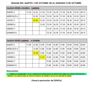 Esta semana las salidas del ferry se verán afectadas por la marea baja. Por lo tanto, se acerca la tabla con los horarios definitivos hasta el domingo 8 de octubre con las salidas confirmadas y aquellas que sufren alguna variación están marcadas.