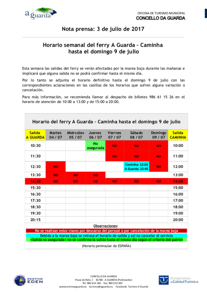 Esta semana las salidas del ferry se verán afectadas por la marea baja durante las mañanas e implicará que alguna salida no se podrá confirmar hasta el mismo día. Por lo tanto se adjunta el horario definitivo hasta el domingo 9 de julio con las correspondientes aclaraciones en las casillas de los horarios que sufren Leer más
