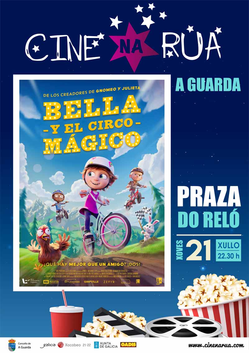 El programa de actividades continúa esta semana con la proyección de Cine en la calle “Bella y el circo mágico”, que tendrá lugar el jueves 21 de julio a las 22:30h en la Plaza del Reloj.