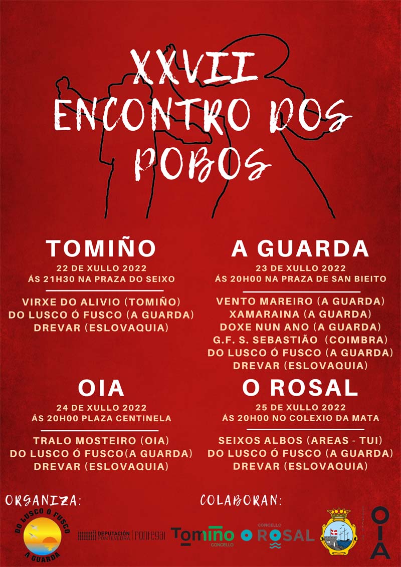 También en la jornada del sábado día 23 de julio el Auditorio de San Benito acoge el XXVII Encontro dos Pobos, el festival folclórico internacional más longevo de nuestra comarca, que este año contará con la participación de los grupos de Galicia, Portugal y Eslovaquia: Vento Mareiro, Xamaraina, Doxe nun ano, G.F.S Sebastiao, Do lusco ó fusco e Drevar, bajo la organización de la A.C Do Lusco ó Fusco.