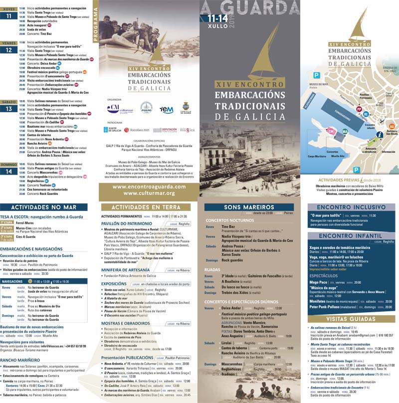 La exhibición de las embarcaciones tradicionales de Galicia, junto con algunas de otras localidades españolas y mismo alguna foránea, forma parte de un amplio programa de actividades culturales y lúdicas, organizado por Culturmar, Asociación Piueiro, Instituto de Estudos Miñoranos y Ayuntamiento de A Guarda, con el patrocinio de la Deputación de Pontevedra y de la Xunta de Galicia, a través de las consellerías de Mar, Medio Ambiente e Cultura e Turismo.