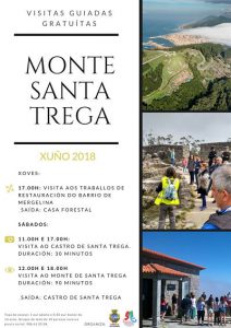 Aquellas persoas que deseen realizar en una visita guiada completa por el emblemático monte guardés y conocer en profundidad su valor arqueológico, religioso y paisajístico, podrán participar en las salidas que partirán cada sábado a las 12:00 y a las 18:00 h del castro. Desde allí, las y los participantes recorrerán primero el poblado, para más tarde subir a la cima del monte y visitar la ermita de Santa Trega y el MASAT.