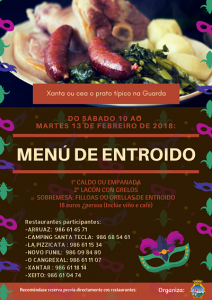 Desde el sábado 10 y hasta el martes 13 de febrero, se podrá saborear el popular «Menú de Carnaval» en siete restaurantes de A Guarda. La iniciativa gastronómica, impulsada por el departamento de Turismo, contará con una completa oferta de alimento típicos de los que se podrá disfrutar por un precio único de 18 euros.