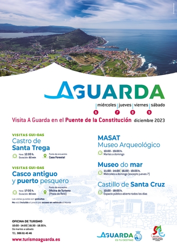 Por último, recordar que la Oficina Municipal de Turismo también tendrá horario especial y estará abierta de martes a sábado de 10:00 a 14:00 y de 16:30 a 18:30. También se puede consultar por correo electrónico a turismo@aguarda.es o por teléfono. 986 61 45 46.